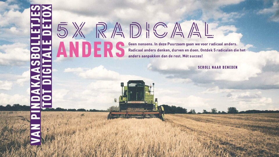 Geen nonsens. In deze Puurzaam gaan we voor radicaal anders. Radicaal anders denken, durven en doen. Ontdek 5 radicalen die het anders aanpakken dan de rest. Mét succes!